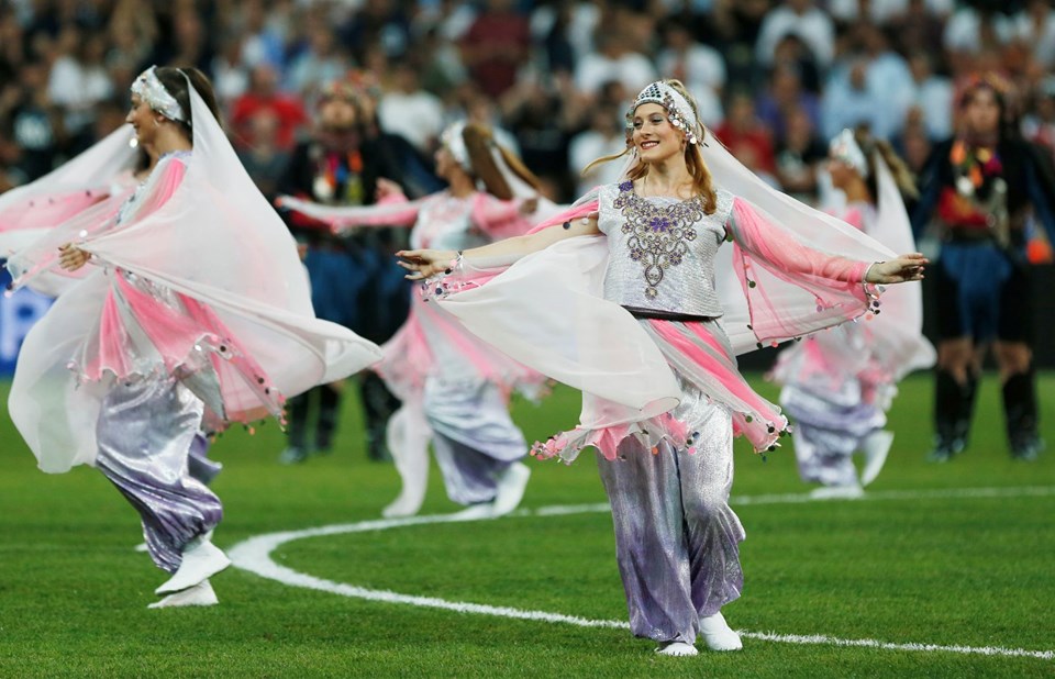 Maç öncesi halk oyunları gösterisi keyifli anlar yaşattı.
