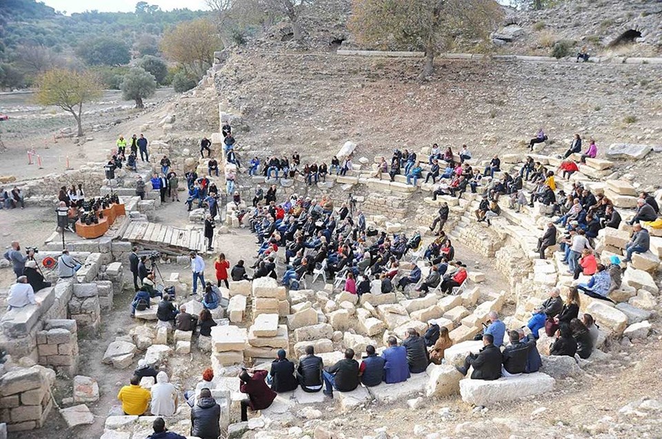 Müzayede, bin 800 yaşındaki zeytin ağacının bulunduğu Teos Antik Kenti'ndeki antik tiyatroda yapıldı.
